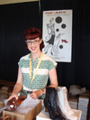 I most enjoyed the vintage and vintage replica clothing and accessories. A shoe manufacturer who creates to actual designs of the time. Antique clothing including a great selection of handbags, period unmentionables in silky, satiny and wool fabrics and swimsuits (one in wool, no less!). For those who prefer more modern fabrics with flavors of period patterns and designs there was even a Long Beach designer exhibiting!