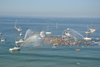 People were lined up on the beach, and boaters, swimmers, divers, and paddle boarders filled the water. People splashed their approval, and the lifeguard boats did a water tribute. The rainbow added to the beauty. The singer sang many wonderful songs.