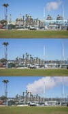 We took AES' rendering and added a rendering of the plumes from the three smokestacks. As anyone can see, it would be practically impossible to hide the exhaust plume with palm trees.