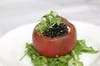 The new Caprese Cups are an innovative variation of that popular dish, served in a tomato ‘cup’ and garnished with dwarf basil, balsamic pearls and Kalamata puree.
