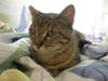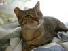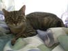 Hazel is a very sweet girl with a kind and gentle personality. She is about 2 years old, and is a brown tabby with a little bit of orange tortoiseshell spotting throughout her coat.