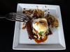 Dessert was a brownie topped with vanilla ice-cream doused in a bourbon sauce and pistachio crumbs. I was already full but managed to take a few bites – it was decadent. My husband refuses to let a dessert go unfinished and happily polished it off.