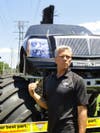Monster truck driver George Balhan of Redondo Beach visits West Caldwell, N.J. to talk to automotive students.
