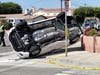 A Kia sedan flipped onto its side in a Sunday afternoon accident on Aviation Boulevard. The collision between two vehicles occurred at Curtis Avenue around 1 p.m. Northbound traffic was briefly diverted around the scene. According to Redondo police, minor injuries were reported.