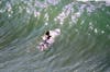 The water quality didn't keep the ocean from being crowded, however, nor did it keep a local photographer from swimming out to take pictures.