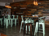 I really like what they did with the space. The décor is vintage industrial complete with Chesterfield sofas, retro light fixtures and reclaimed wood paneling. The two stories compromise almost 7,000 square feet.