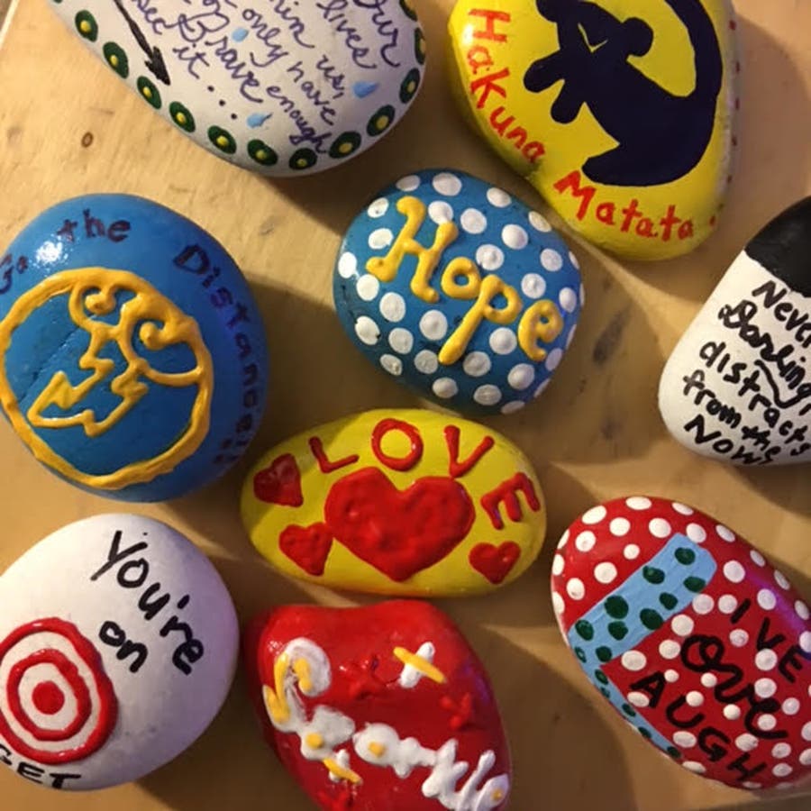"The Kindness Rocks Project immediately caught my attention because of its sentiment and simplicity," Harris said in a blog post. "Not only does this offer all the excitement of a city-wide treasure hunt, but it brightens up the scenery with little bursts of joy!"