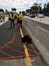 The sinkhole, 15 feet deep with a 10-square-foot opening, was discovered by a Caltrans sweeper crew member, said Caltrans spokesman Patrick Chandler.