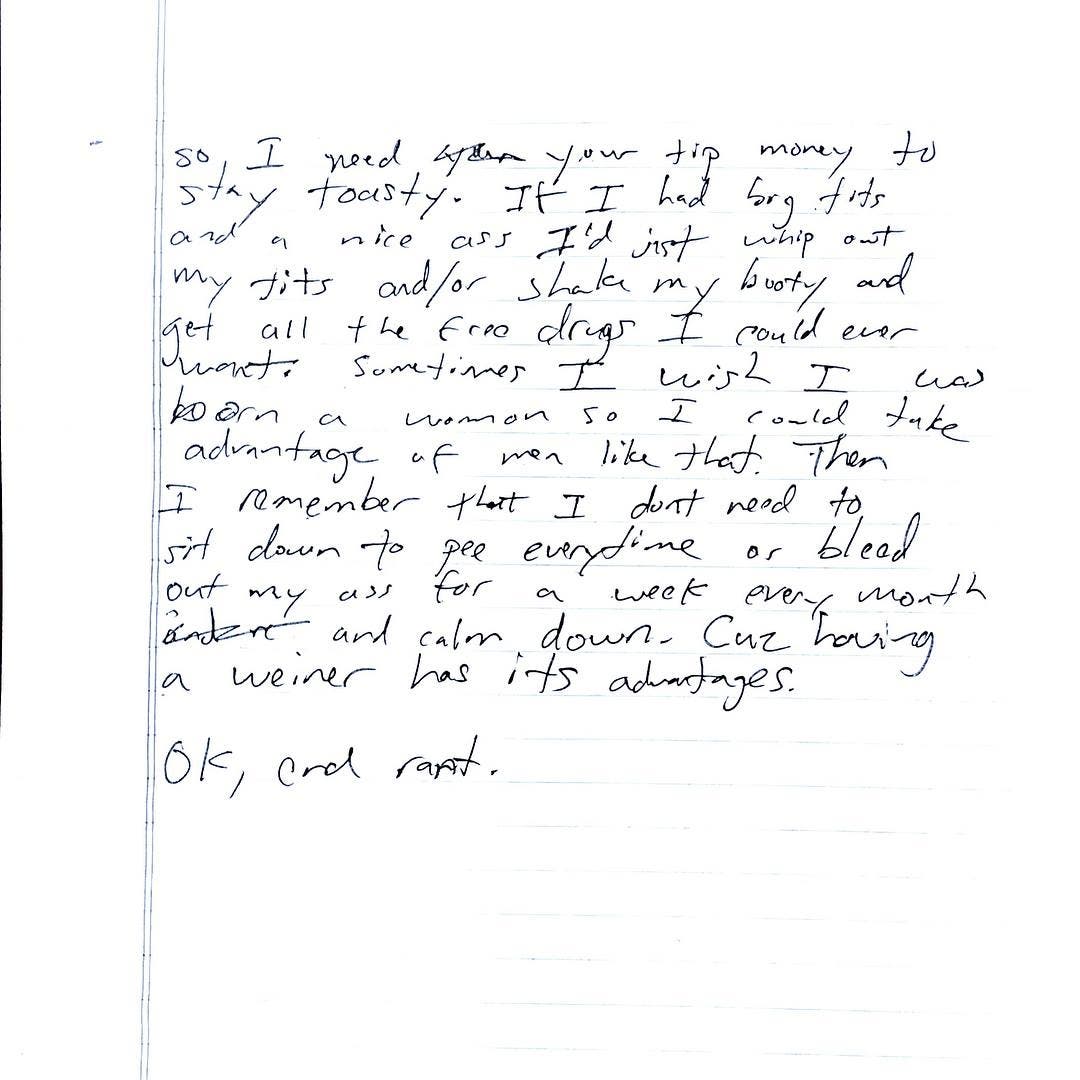 The man who wrote the letter called himself a "disgruntled employee" and admitted to being high. He wrote to Ledford that he needed her "tip money to stay toasty."