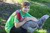 “My birds live a happy life. They breed naturally and my mom helps us hatch them in an incubator in our kitchen. I love to see them hatch, the babies as so cute!” says Christopher. “I like raising turkeys and I defiantly have favorite birds. My breeding tom is named Bobo and he follows me around like a dog. He also has the annoying habit of attacking peoples shoes, especially red ones.”