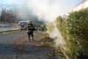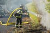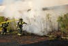 Image 1: Firefighter Paramedic Giau Nguyen works to extinguish a bamboo fire next to a Church