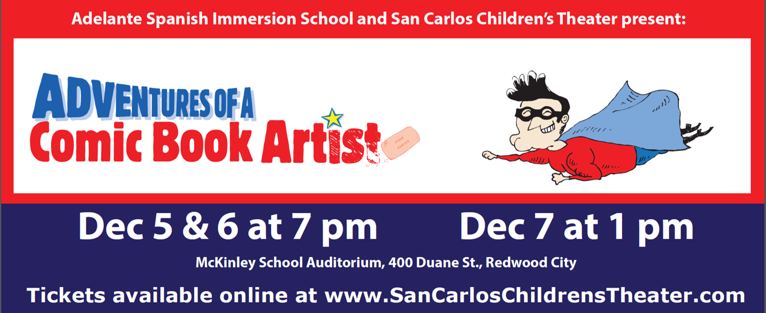 Adelante and San Carlos Children's Theater will be performing their winter mini-musical "Adventures of a Comic Book Artist" on Dec 5-7