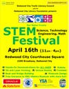 Join us at the first-ever FREE San Mateo County STEM festival to introduce kids and adults alike to Science, Technology, Engineering, and Math through fun speakers, contests, and over 30 hands-on demonstrations such as 3D and laser printing, robots, virtual reality, coding, static electricity, and more as part of Global Youth Service Day. Stop by the festival at Redwood City Courthouse Square at 2200 Broadway any time between 11:00am and 4:00pm. There will be also be 10 stage presentations throughout the event. The San Mateo County History Museum will be open for FREE during this event with even more activities and contests inside. The contests include airplane design, hoop glider design, and Rubik's Cube solving competitions and provide 27 prizes for age groups including ages 4 - 18. In addition, any child visiting 10 or more booths during the day will receive a prize (for first 300 kids). Check out the times for stage presentations or see a list of booth participants on the events tab here: www.stemfestival2016.com