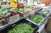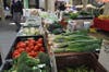 A Central Valley farmer displayed a large selection of organically-grown vegetables.. A steady stream of customers bought leeks, mushrooms, and more.