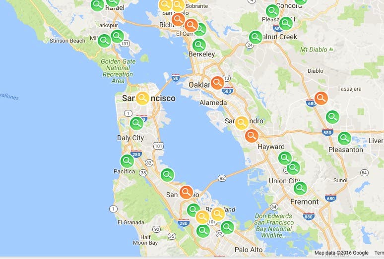 In all, about 23,450 PG&E customers were without power across the Bay Area as of 9:30 a.m. The most serious effects were being felt in the East Bay and North Bay.