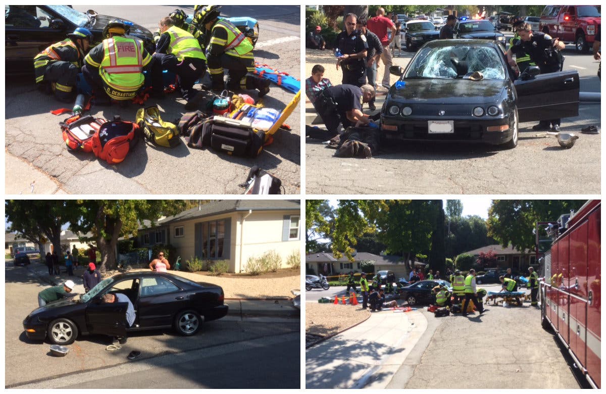 (Images show the scene in San Mateo on Wednesday, Sept. 10, 2014 after a car hit four pedestrians. Courtesy: D. Clark)