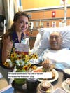 “The beautiful flowers and her smile brightened my day in the hospital,” said 90-year-old Kin Fai Lee of Belmont, while Lee’s daughters took a picture of him with Sara, and the arrangement.