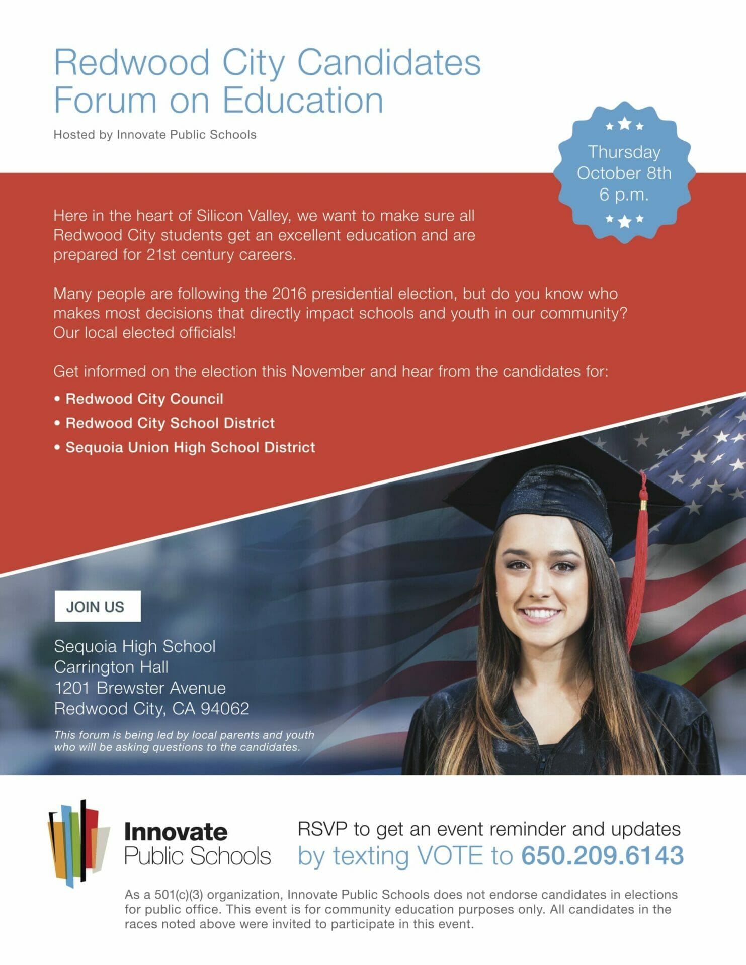 Help all Redwood City kids get access to great public school education. Join us for a forum to learn how local elections can impact youth!