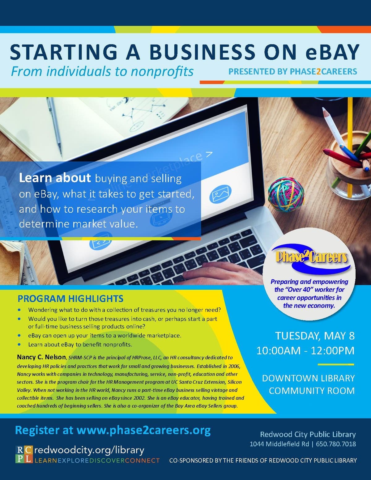 From individuals to nonprofits. Phase2Careers in conjunction with the Friends of the Redwood City Library, will sponsor: STARTING A BUSINESS ON eBAY: From individuals to nonprofits.