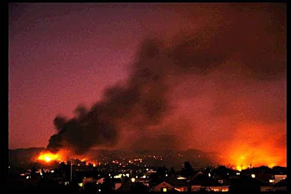 Photo: The 1991 Oakland Hills fire killed 25 people and destroyed more than 3,000 homes. A fuels mitigation plan has drawn lawsuits. Photo credit: NASA