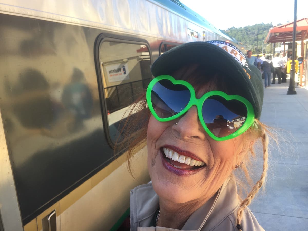 Carol "Red" Parker was one of the SMART ambassadors who was at the San Rafael station assisting and answering questions for riders. There were ambassadors available at all stops during the weekend.