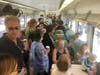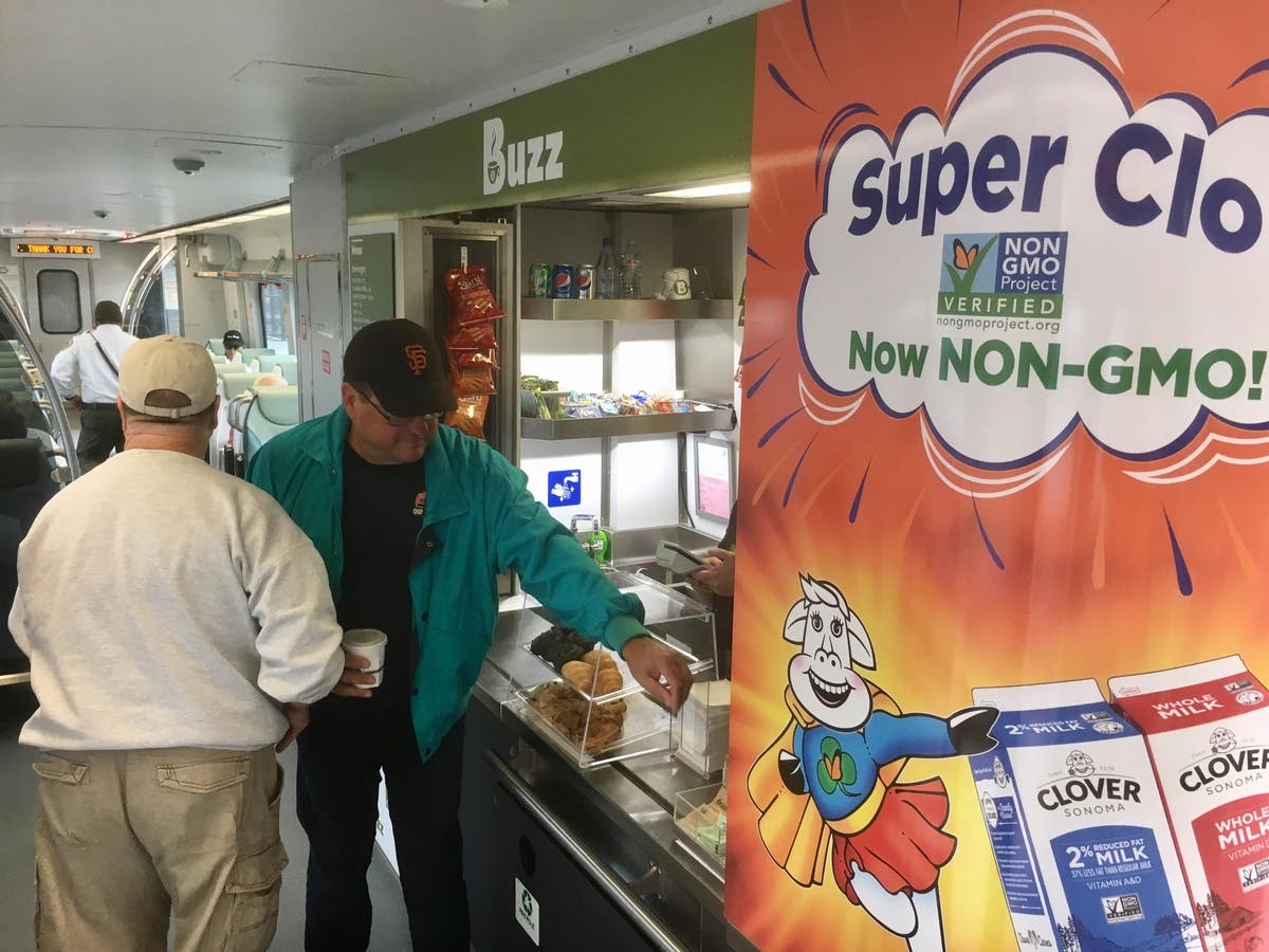 The trains were packed during the rest of the day Sunday, with many passengers grabbing bites to eat from the small on-board snack counter, the Buzz, which offers coffee, pastries, chips, drinks, water and chips.