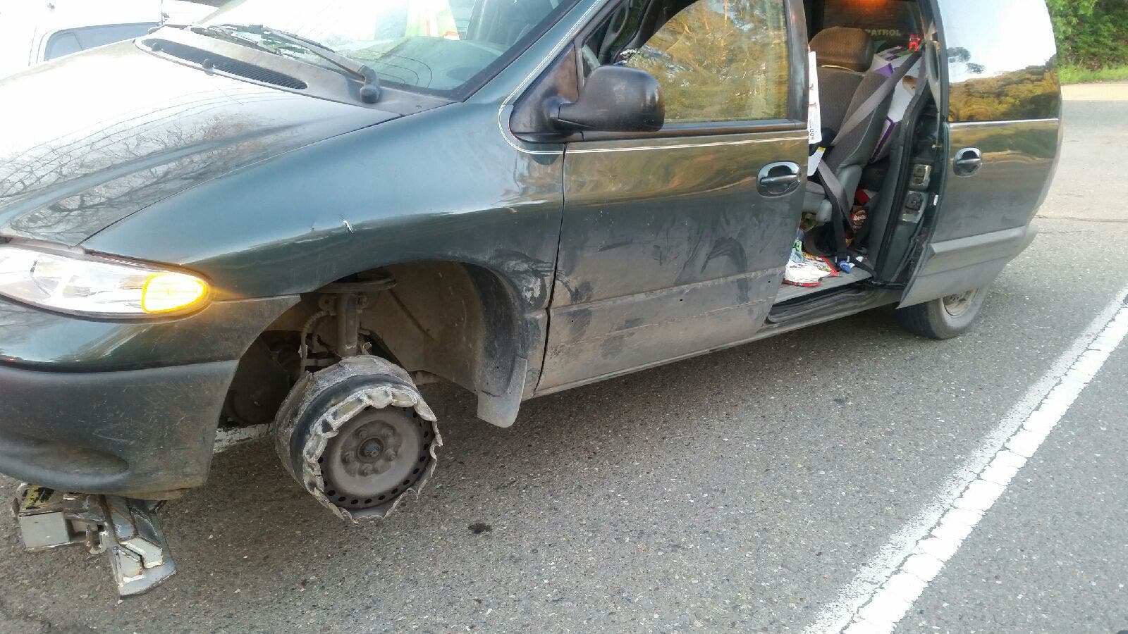 CHP Officer Mike Phennicie and a Cloverdale police officer responded to a call about a crash on the highway, but noticed the Dodge had been driven a considerable distance without a left front tire. CHP officials said the wheel was worn down to the hub.