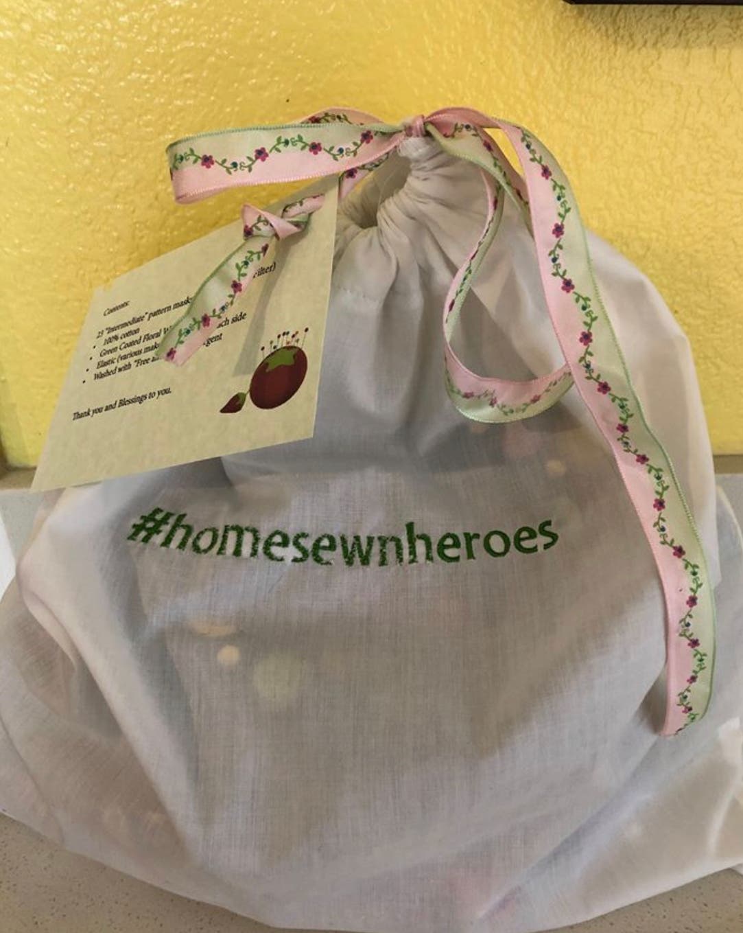 Volunteers must go through an application process. The group texts the secretive drop-off locations to the volunteers who are given instructions that include washing the masks with their washing machine set to hot to kill any possible trace of the virus. Each mask is then placed into a bag with clean, gloved hands.