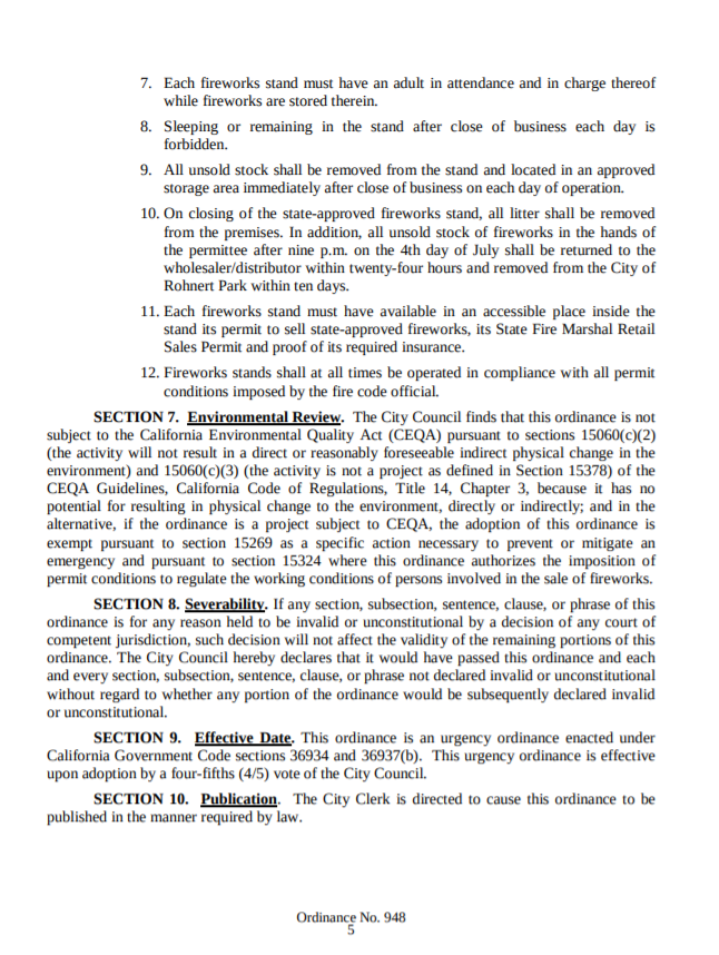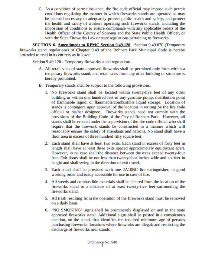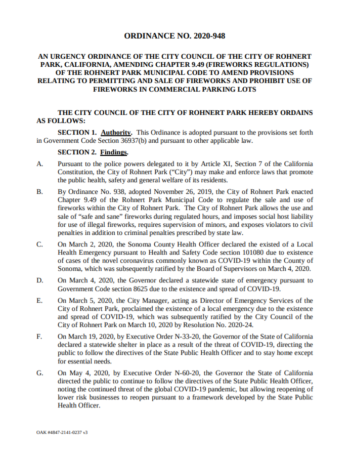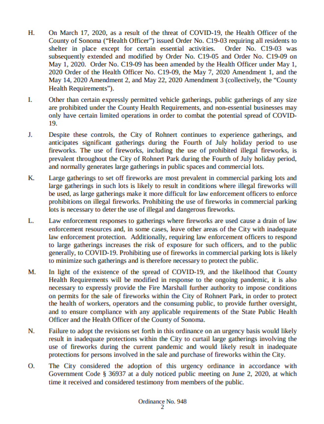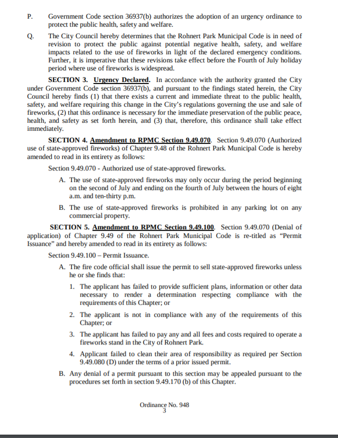 Here is urgency ordinance No. 948, adopted June 2 by Rohnert Park City Council: