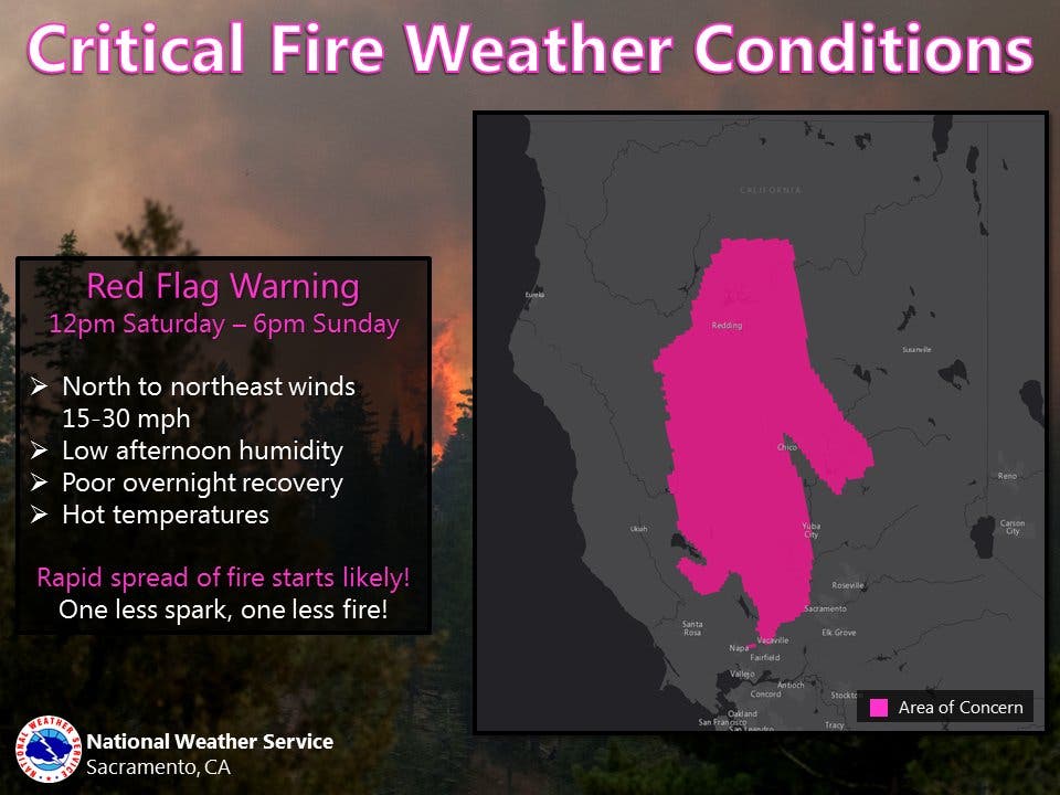 BREAKING: The affected areas primarily are in North Bay mountains. Any fires that begin will likely spread rapidly, weather officials said.
