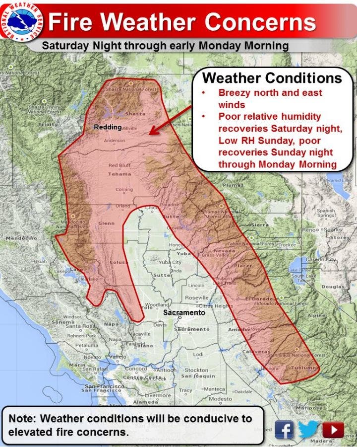 NORTH BAY, CA – A red flag warning is in effect for the North Bay mountains until 6 p.m. today because of hot, dry weather and gusty winds expected in the area, National Weather Service officials said.