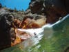 We launched at Lake Shasta, one of our favorite spots to putt around, swim, and create our own adventures. Each day, we did what we wanted and were active by taking in ½ to 1 mile swims each day, having pull up contests off the boat dive platform, and hiking around off shore. Now…getting to the bootie injury…a few minutes of fun for over a week of discomfort…next time I am bringing on the Charmin...lol. OK…we discovered a Natural Rock Water Slide that existed off one of the coves, and although a bit of a hike to get there…it was absolutely beautiful and tropical looking…so many pools surrounded by golden rocks…BREATHTAKING. The end of paradise trail revealed the Rock Water Slide…well, a swim across the natural pool and climb up the rocks using a knotted rope was the only way to reach the top of the slide ... I admit I was a bit nervous...it was a thrill for sure...but...the OH NO ...bump bump bump…scraped my bootie on the rocks.