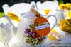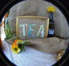 We spent time on a lot of little details like gold framed pictures, gold painted pumpkins, gold framed mirrors, and lace and burlap in other areas. Lace and burlap lined the tables, and pumpkins hid in many corners. We also handmade tags for all the tea pots and food. We found some great gold fabric leaves that we stamped with the word 'Joy' and put under each tea cup. Each setting of tea had a classic original china setting that has been around for years in Nicole's family line.