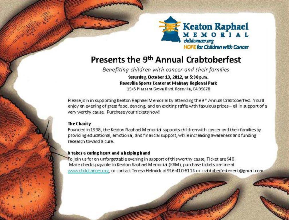 Please join in supporting Keaton Raphael Memorial by attending the 9th Annual Crabtoberfest. You’ll enjoy an evening of great food, dancing, and an exciting raffle with fabulous prizes – all in support of a very worthy cause.