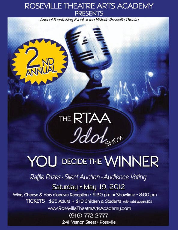Wine, cheese and hors d'oeuvre reception, raffle, silent auction, and lots of local talent! Who will be this year's RTAA Idol? YOU decide!