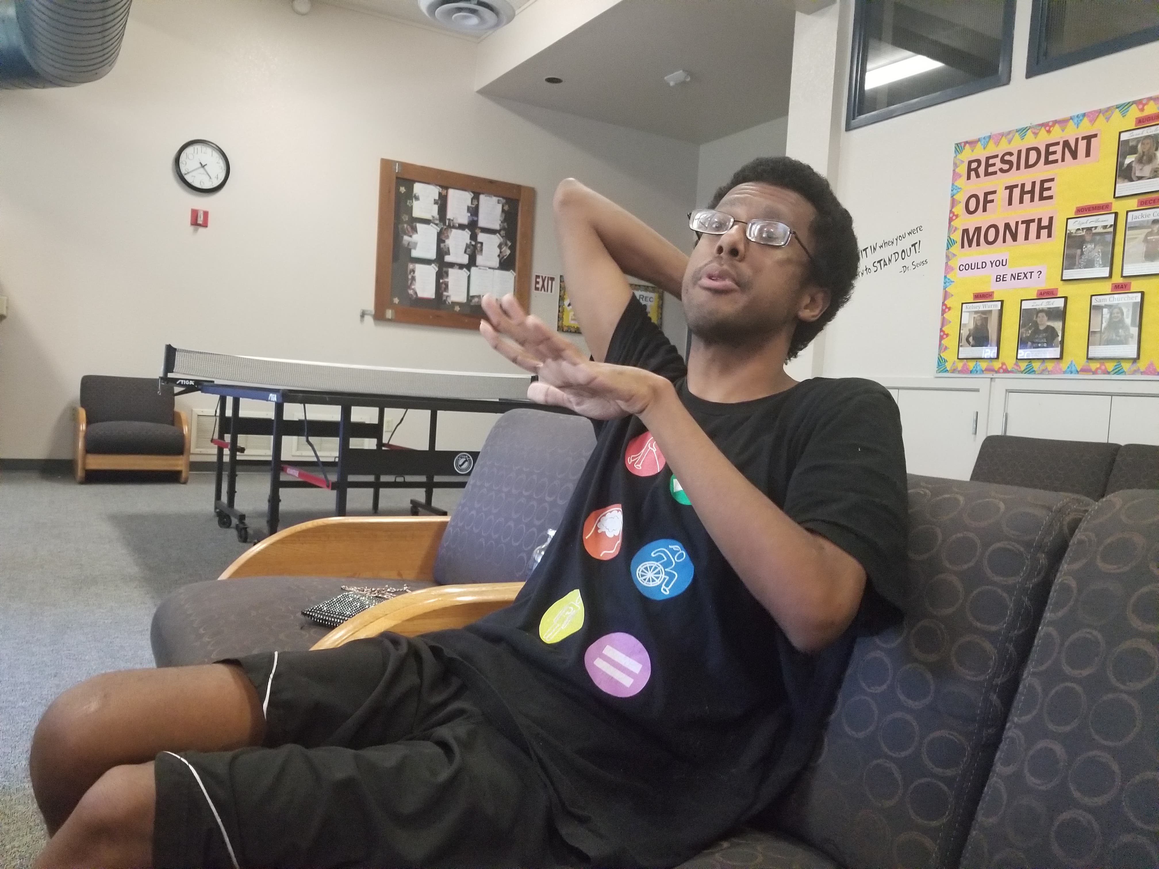 The price was right for Polamalu’s friend Moe Irwin, a natural science major who is visually impaired and uses his disability benefits to pay rent. Cluttered with the typical college-student piles of clothes and books, the space he shares with a roommate is just big enough to fit the basics, plus a few sparkly dresses Irwin wears for drag performances.