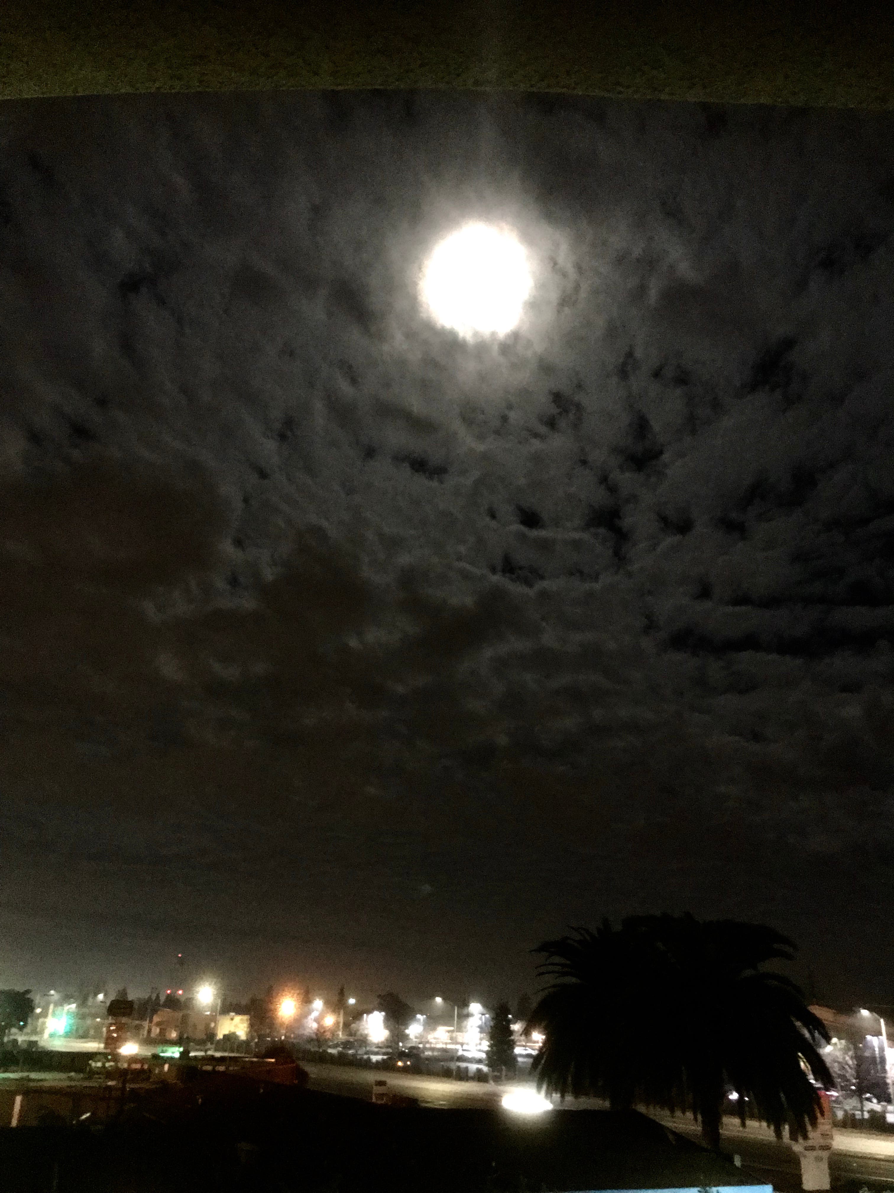 SACRAMENTO, CA — Joanne Savage snapped this recent photo of of a night sky over Sacramento as clouds blurred the outline of the moon.