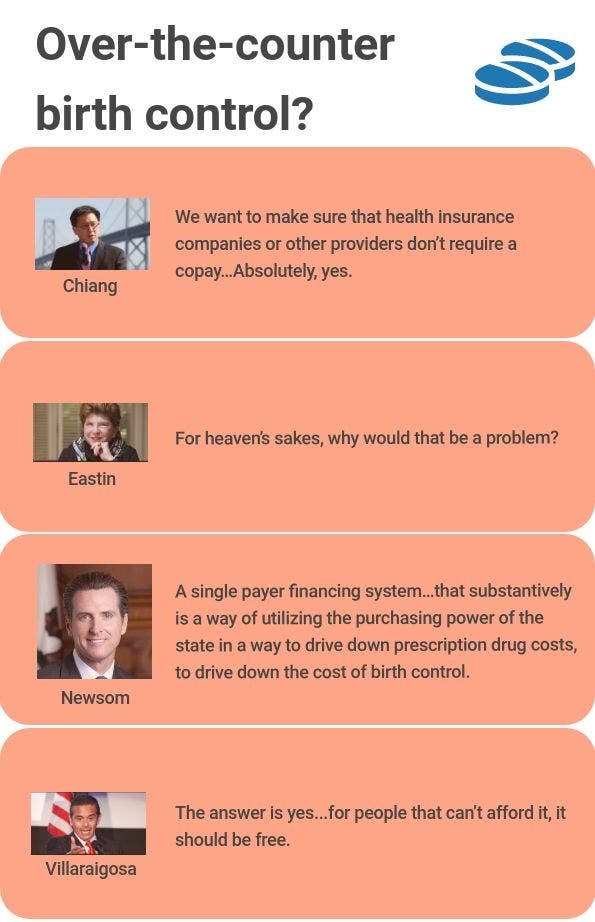 The candidates were asked if they would support making birth control fully over-the-counter. This is something that only the Food and Drug Administration has the power to do. Nevertheless, each of the gubernatorial candidates was solidly on board with the idea. Newsom also used the opportunity to endorse a single payer system that would cover all health care costs, while Villaraigosa subtly took an opposing view.