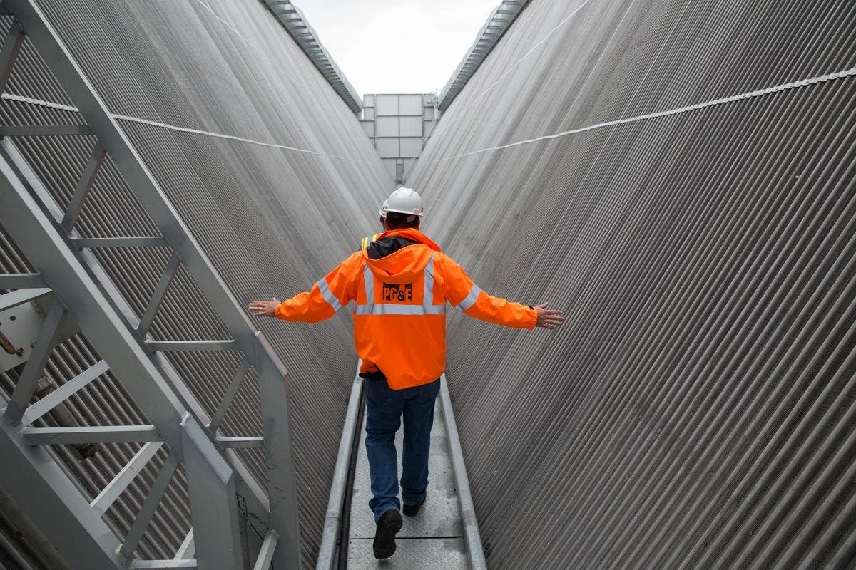 Photo credit: A PG&E worker at a plant in Antioch, California. Photo by Carl Costas for CALmatters