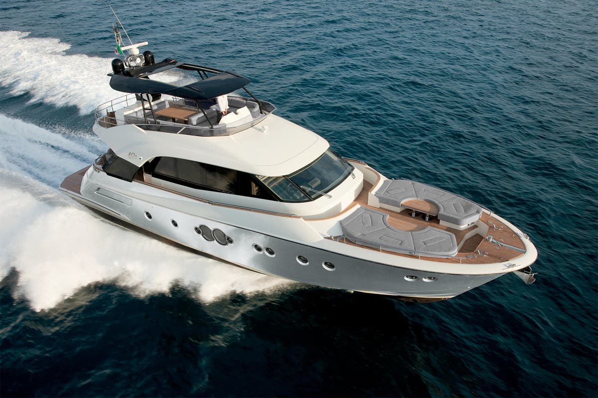The New Monte Carlo Yacht MCY 70 has been recognized for its exceptional development of the cutting-edge functional features and aesthetics that were expressed and seen on the MCY 76 & MCY 65. 50 North Yachts is proud to represent the MCY70 that has no equal in it’s class, offering unparalleled custom options, classic distinction, attention to detail and an unbeatable after sales experience. This model is unique and beautifully different from any other models available on the market today. The highly expressive style of the Monte Carlo yachts with great elements like the high-flared bow, this model is also setting itself apart from other models available with its unique features like the sinuous flow between the fashion plates and the fly. With a cruise speed of 26 knots and a top speed of 33 knots, this boat will get you where you need to go in style and comfort. The gyro stabilizers and joystick control give the operator unparalleled control around the docks and her guests a comfortable ride at slow speeds or relaxing at anchor. Designed with a clear vision and built with state of the art production methods featuring a fully infused hull made with a combination of fiberglass, carbon fiber and Kevlar. All giving her owner the confidence to safely cruise the amazing waters of the Pacific Ocean.