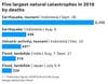 Its crazy to think that a fire of this magnitude can cause more devastation and cost than an earthquake a tsunami or tornado. The total cost of global catastrophes in 2018 was a total of 160 billion dollars, which is down below the last years number of 360 billion dollars. The deadliest catastrophe was due to a deadly duo in Indonesia. On September 28, 2017 over 2,102 people were killed when an earthquake and tsunami hit the coast. For people living in these areas, always remember to remain safe and prepared for disasters. With climate change in the midst of our civilization, its difficult to tell if the pattern will change in the future years.
