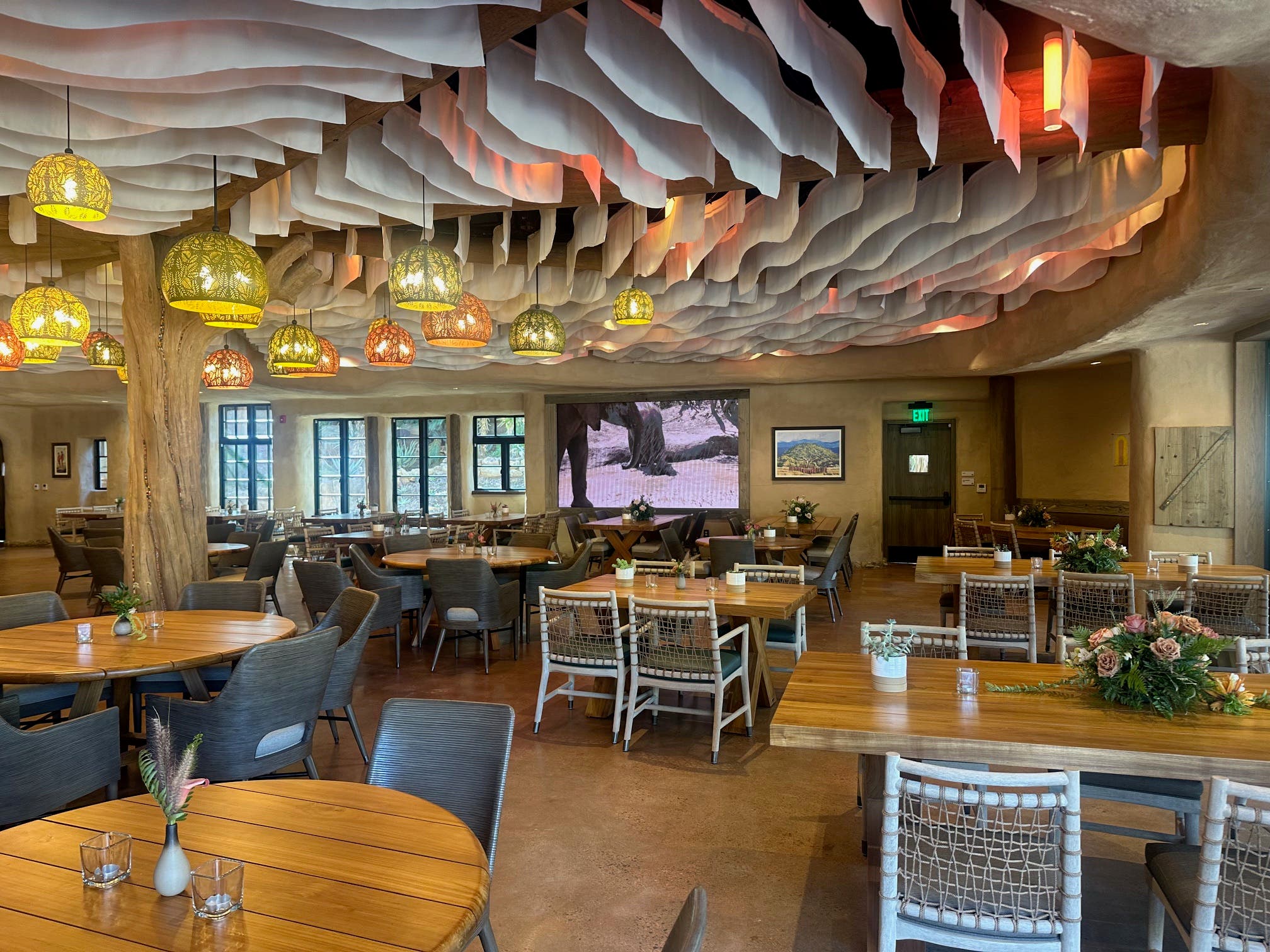 The space features Mkutano House, a two-story restaurant overlooking one of the watering holes, and Mkutano Park, an area where guests can learn from educators about African wildlife.