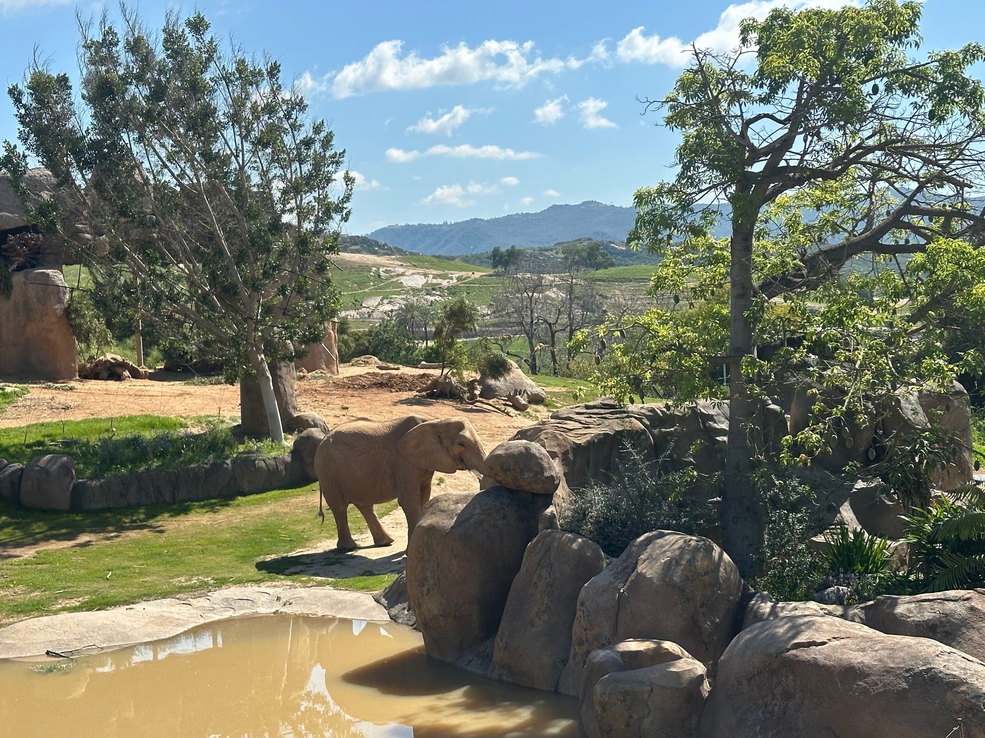 Elephant Valley places visitors along pathways where they can observe the Escondido park's elephant herd roaming a savanna-style landscape, watching them forage, socialize and cool off in watering holes designed to mimic their natural environment.