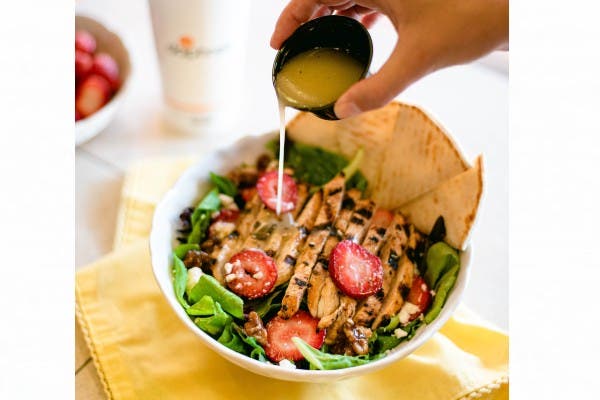 An outdoor patio is open at the Torrey Hills location of Daphne's, a Mediterranean-inspired chain known for its Greek-style fish, surf & turf and vegetarian plates, gyros, falafel, hummus and pita. New for the summer is a limited-time Strawberry Salad, featuring spring mixed greens tossed in honey vinaigrette dressing and topped with fresh strawberries, candied walnuts, feta, grilled chicken and served with warm pita and tzatziki sauce. See Daphne's website for more information.