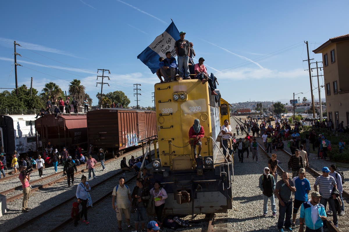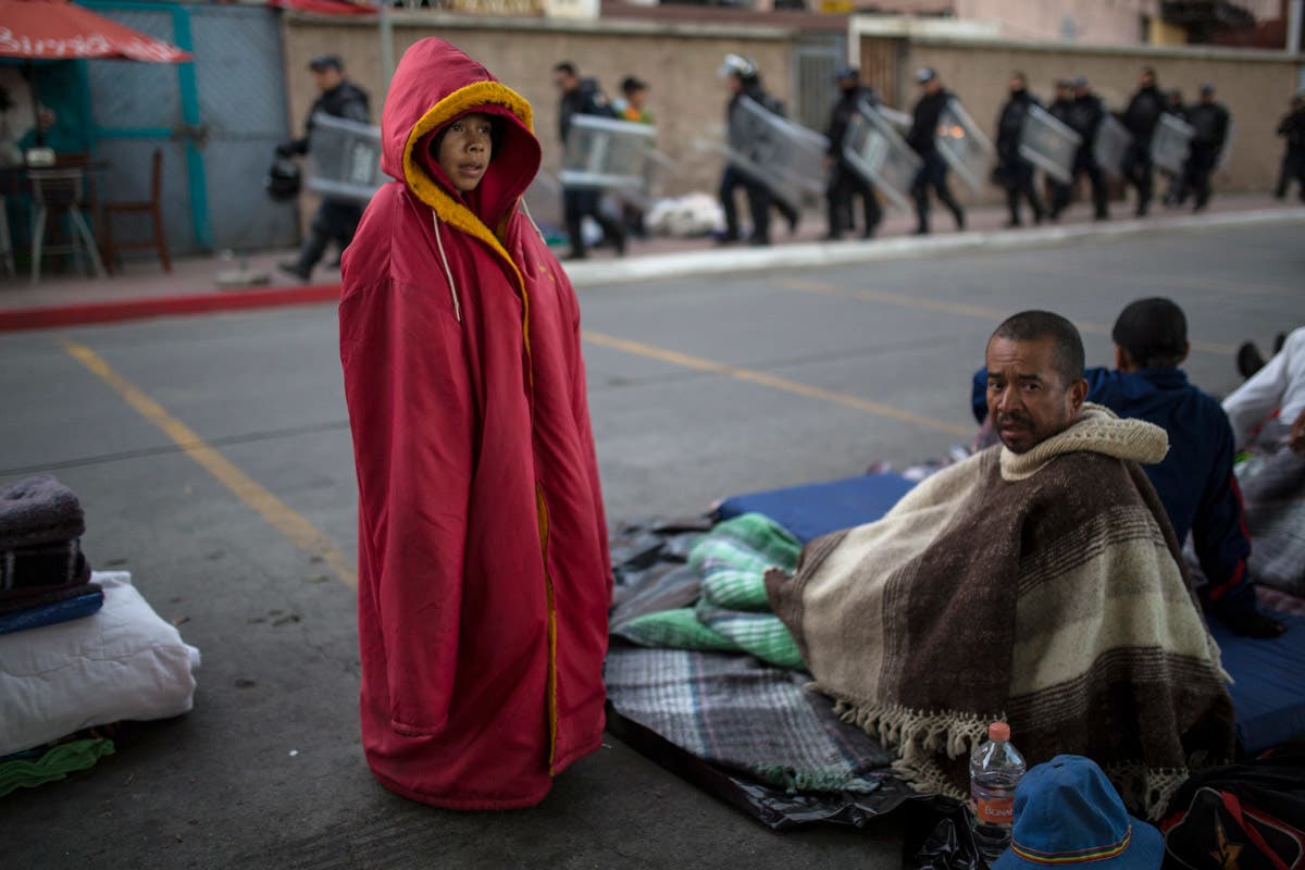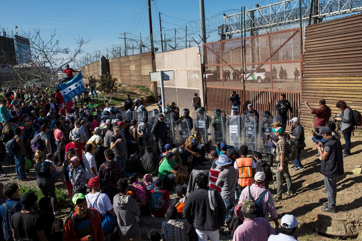 See new photos of the migrant caravan workers at the Mexico-U.S. border below: