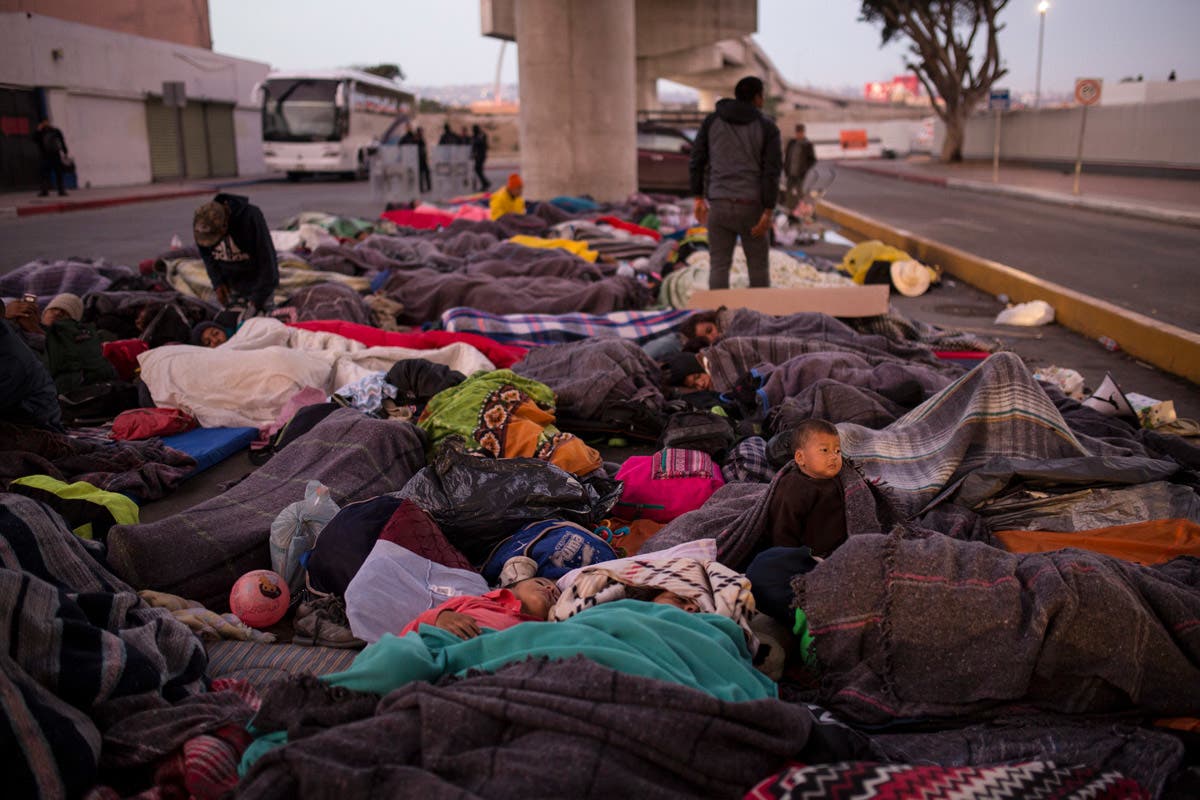 Migrants sleep on a street near the Chaparral border crossing in Tijuana, Mexico. (AP Photo/Rodrigo Abd)