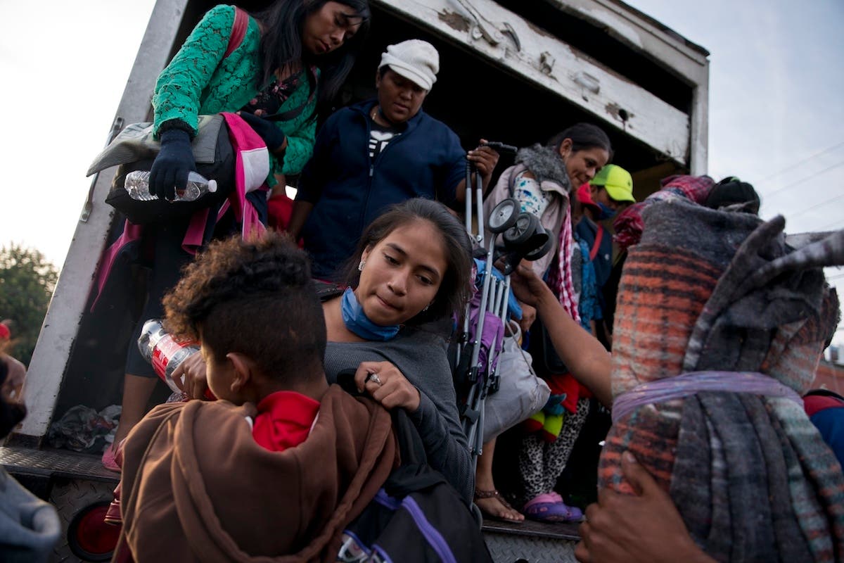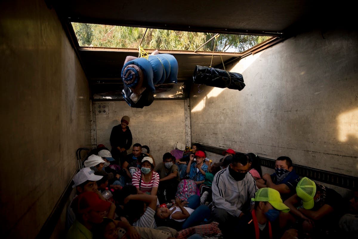 Migrants travel in a truck from Mexicali to Tijuana, part of the migrant caravan in Mexico. (AP Photo/Ramon Espinosa)