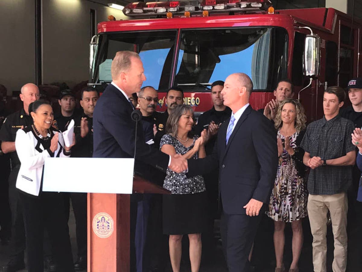 "Those of us that have had the opportunity to work with the chief know that he is a man of integrity, he cares deeply about our city and understands the unique challenges we have, including a now year-round wildfire season and the safety of our beaches," Faulconer said. "He's going to be a great leader for this department."