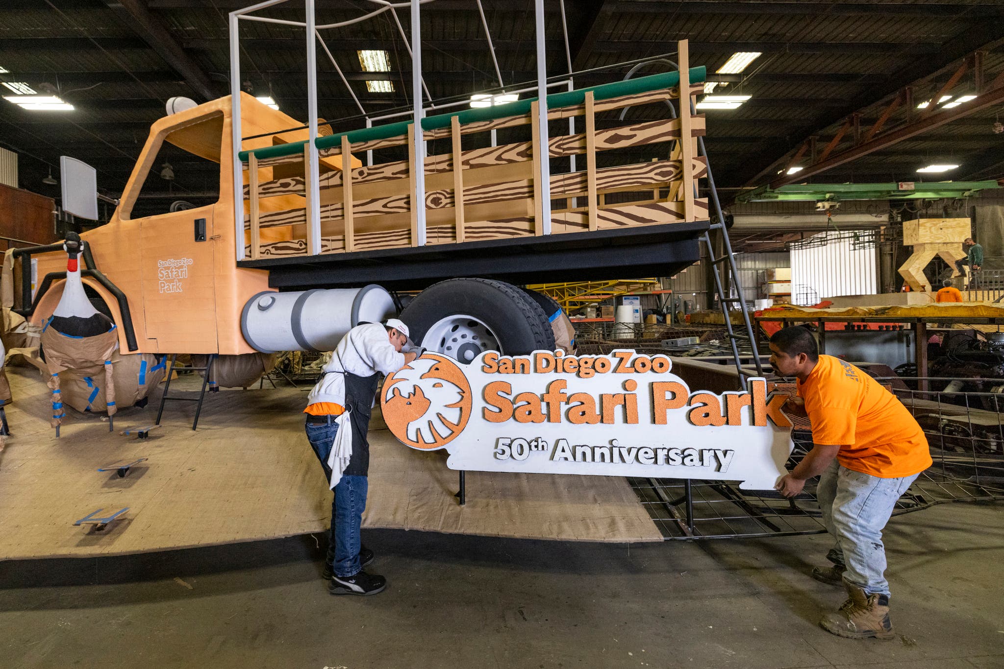 SAN DIEGO, CA — The San Diego Zoo Wildlife Alliance is completing its float construction for the 134th New Year's Day Rose Parade. The float is designed to honor the San Diego Zoo Safari Park’s 50th anniversary by showcasing some of the beloved animals at the park and the famed "safari" truck.