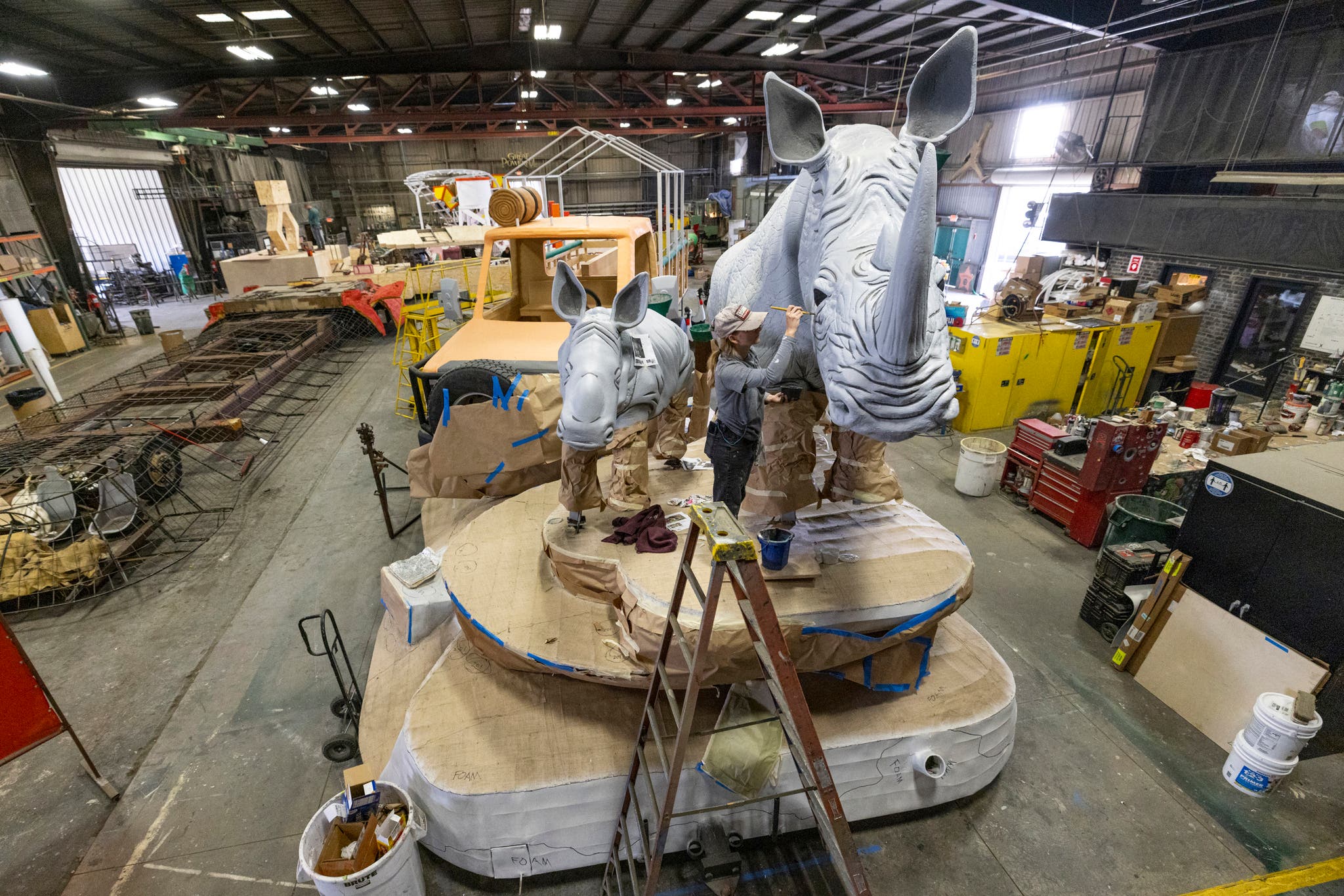The 2023 float theme “Celebrating 50 Years of Conservation,” depicts rhinos, giraffes and the Safari Park’s Wildlife Safari truck experience in hopes of bringing to life the park’s ability to connect guests with wildlife and create life-changing moments, according to float designer John Ramirez.